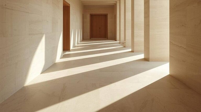 The light touches the floor first. Not the polished centre of the room, but the edges, where footsteps have softened the stone over years, where small imperfections have been accepted rather than corrected. It lingers there, warming what is already known.